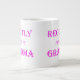 Recently promoted to Grandma in pink text with a solid white background. The text is printed on both sides so that it doesn't matter if you are right or left handed, you will still be able to show your pride. This is a JUMBO 20oz mug which means less time filling it up and more time with your new grandchild. "recently promoted to Grandma", grandchildren, grandparent, celebration, baby, joyous, occasion, happy, coffee, tea,