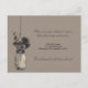 Perfect for a country style wedding or maybe you just love Mason Jars! Old vintage Mason Jar hanging on a hook with country wildflowers. A wonderful warm brown background colour with black drawing of a Mason Jar filled with country wildflowers. If you have any questions on this design or want a colour change please email me paula@labellarue.com Also check for the RSVP, RECEPTION and GUEST SEATING Cards to match!