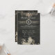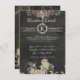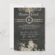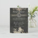 NOTE: THIS SIZE WILL NOT FIT IN THE SQUARE INVITATION ENVELOPE CHANGE TO 3 1/2" X 5" SIZE. The bride and groom's monogram and first names are set off in an elegant, hand drawn typography frame and divider lines along with a handwritten calligraphy font "Reception Details." Suitable for a formal, black tie affair or a country rustic elegance style event. In a dramatic vertical typography layout that is at once both vintage and modern. Ideal for a Bohemian, eclectic, romantic themed wedding. We all know there is no more romantic place on earth than Paris, Franc! Think sidewalk cafes, candle light and vintage boho floral style. This chalkboard art hand painted design captures the essence of romance and sets the theme and tone for your wedding guests. Flower artwork inspired by antique french wallpaper pieces fills the corners in wreath bouquets. The design is a modern typography style layout for simple, clean lines - the perfect mix of vintage and modern sensibilities. Audrey Jeanne Roberts artist, Copyright all rights reserved.
