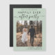 Sage green save the date magnetic announcement card for your post-elopement or post small wedding reception featuring your photo and "Happily Ever After Party" in a mix of simple typography and trendy script with swashes. Under your photo you can add your first names and reception/party date.