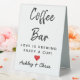 wedding reception table top sign, wedding coffee bar sign for reception, minimal modern script calligraphy chic, romantic minimalist tabletop shower sign, couple engagement shower hen party, bridal shower bachelorette birthday bach, baby shower love is brewing, wedding coffee sign barn decorations, coffee bar black and white, wedding favours sign coffee favour