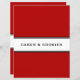 Custom double sided recipe divider page for a red cookbook recipe binder; one design of a matching set. Features a simple modern minimalist design in a red black and white colour palette with customisable text presented on a coordinating white banner with black accents
