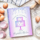 Here’s a wonderful way to keep track of all your favourite recipes. Easily access your culinary adventures with this elegant, sophisticated, simple, and modern custom name spiral notebook. A sparkly, purple, pink, and blue 2 layer cake, script handwritten typography and glitter drips overlay a faux metallic purple ombre background. Personalise with your name on the front. Special recipe template paper design on the inside. Makes a stylish statement every time you open it to create something delicious. A great gift for a friend, as well as yourself!