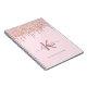 A blush pink background. Rose gold faux glitter drips, paint dripping look as decoration.   Personalise and add a name, monogram letter and a text on the front. The name is written a modern grey coloured hand lettered script with swashes.  For your favourite recipes.