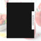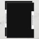 Custom double sided recipe divider page for a black and white cookbook recipe binder. Features a simple modern minimalist design in a classic black and white colour palette with customisable text presented on a coordinating tab.