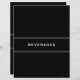 Custom double sided recipe divider page for a black and white cookbook recipe binder. Features a simple stylish minimalist design in a classic black and white colour palette with customisable text presented on a coordinating banner.