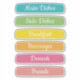 This sticker sheet includes popular section labels such as Main Dishes, Side Dishes, Breakfast, Beverages, Desserts, and Breads—perfect for creating clear binder chapters and keeping your cookbook tidy.