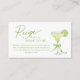 This elegant, margarita-themed recipe enclosure card is the perfect way to request guests share one of their favorite recipes with the bride-to-be. The small card features a delightful watercolor margarita glass adorned with a charming lime green bow and a trendy handwritten script. The instructions are fully customizable, while the reverse side can be personalized with the event title and date. © Kimbellished, LLC
