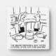A woman is standing motionless in her kitchen having prepared dinner. She explains to her husband that the recipe said "Stand after cooking"! Funny cookery cartoon. Funny Plaque.