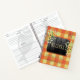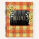 A charming rustic vintage farmhouse recipe organiser cooking book with yellow gold sunflowers bouquets over a rusty orange yellow terracotta gingham plaid pattern. ++++++++++ Personalise it with chef monogram, name, and your text! +++++++++ It can be a modern personal blank recipe journal book for your kitchen, a grandma's family cookbook, or a beautiful custom keepsake gift for a cooking lover, a chef, for a bridal shower, wedding, family anniversary, birthday, Christmas.