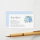 This recipe request enclosure card features a watercolor blue hydrangea botanical design with green foliage and leaves. Personalise the text with your own. Matching items also available.