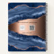 A dark blue and rose gold agate, marble stone print as background Personalise and add a title and your name. The name is written with a modern hand lettered style script.