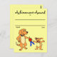 Cartoon art of large dog giving an award to smaller dog. Text reads: "Achievement Award" This "Achievement" Recognition Award is ideal for K-5 grade school teachers. These can be used as mail-out postcards or in the classroom Recognition Awards! Buy in bulk and save!