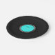 These fun paper plates feature a black vinyl record album with a turquoise label. Easily customise the label text.