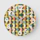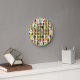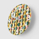 This wall clock has a mid-century modern design of solid semi-circles matched with black and white concentric semi-circles, all on a gold background. If you like the design but prefer different colours, message me.