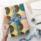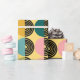 This wrapping paper has a mid-century modern design of solid semi-circles matched with black and white concentric semi-circles, all on a gold background. If you like the design but prefer different colours, message me.