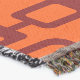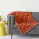 This throw blanket has a md-century modern design of maroon rounded rectangles connected together on a field of orange.