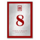Classic Two Lined Red Rectangle Double Happiness On A Faux Matt Silver Foil Paper Background, Double Sided Chinese Wedding Table Number Card.