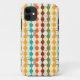 This phone case has a mid-century modern design of rounded rectangles with holes as a background with rounded chains in the foreground all in MCM colours. If you like the design but prefer different colours, message me.