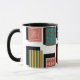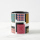 This mug has a Bauhaus design of rectangles with designs inside and their shadows behind.