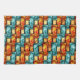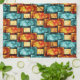Rectangular plates carved and stained, orange cyan tea towel