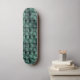 Printed with image of rectangular in white the dark color green and small square shapes. Lightly dark tones of spotted type carbon or as if dirty it was.