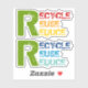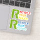 Recycle, Reuse, Reduce quote with colourful text Sticker. This colourful, ecology design features a set with two pieces of the quote "Recycle, Reuse, Reduce" in a grunge style font. The first is of green, red, orange and yellow colour and the second in green, and blue in different tones.