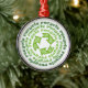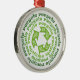 Recycle sign custom ornament featuring a circle made of the word recycle in gradient shades of green and the recycling sign in the centre.