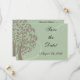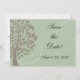 100% Post consumer recycled content photo save the date invitations. (also available on other paper types). Soft, natural and scenic outdoor nature design in colour shades of sage earthy green and soft earth brown. Stylised modern tree shape with flowing white swirls in the background. Some products available on recycled and earth friendly papers.