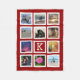 Red 11 Photo Collage Mosaic Square Frame Monogram Fleece Blanket
