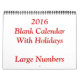 Red 2016 Blank Calendar With Large Numbers