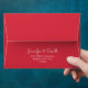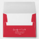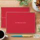Image of a Red envelope shown open and closed. The open envelope displays a white interior. A wooden desk holds a closed envelope alongside a decorative plant and coloured pencils. The scene conveys a minimalist and inviting tone."