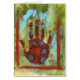 Painting of a red hand with abstract acupuncture meridians.