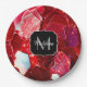 Red abstract mosaic shiny glitter pattern Monogram Paper Plate