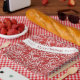 Add a touch of elegance to your holiday season with this enchanting abstract Christmas pattern. Featuring delicate swirls and snowflakes in pristine white against a bright red background, this design captures the magic of a winter wonderland. The combination of bold colours and intricate patterns makes it a perfect choice adding a pop of colour to your holiday table. A template has been provided on this paper plate design to add your name and/or favourite holiday greeting. Search ID1009 to see other products and patterns in this colour scheme.