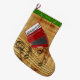 Red accordion with black musical notes on a gold background - Christmas stocking.
