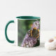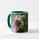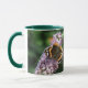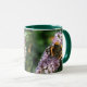 This stunning mug features a photograph of a beautiful Red Admiral butterfly. This species is mainly black with vivid orange patches on each wing along with white spots. The butterfly is sitting on a pretty purple Buddleia flower spike enjoying some nectar. The photograph was taken using macro photography for a stunningly detailed result.