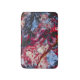 This red agate crystal geode inspired abstract design features bright scarlet red, deep ruby red, black, cerulean blue and creamy off-white shades.