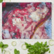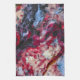 This red agate crystal geode inspired abstract design features bright scarlet red, deep ruby red, black, cerulean blue and creamy off-white shades.