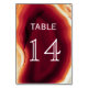 Red agate slice geode wedding table number card. This modern card features a beautiful slice of red agate in fall colours: red, brown, orange, coral, peach.