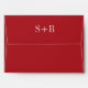 Red agate slice autumn wedding envelope with monogram. It features a beautiful slice of agate in fall colours: Brown, orange, coral, peach on the inside and your initials on red background on the outside.