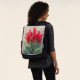 Add some cheer - the floral artwork by ZoeSPEAK on this Backpack is an original photograph of an agave plant, blooming with red flowers. The photo shows the tiny flowers atop the smooth bluish green leaves, in sunlight and shadow against a cream-coloured stucco wall.