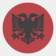 Red sticker with black Albanian eagle on it.