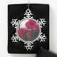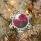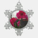 Red Amaryllis and Winter Sunrise Snowflake Pewter Christmas Ornament