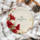 A festive and cosy holiday design featuring bold red amaryllis flowers, golden leaves, and berry accents framing your family photos. Perfect for sharing warm holiday wishes in a rustic yet elegant style.