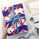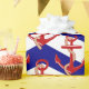 This vibrant nautical design features red anchors on a navy and white chevron stripe background.