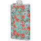 Red and Aqua Poppies Pattern Hip Flask