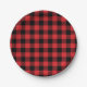 Red and Black Buffalo Check Plaid Pattern Paper Plate