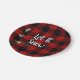 Red and black buffalo Let It Snow snowflakes Paper Plate