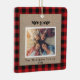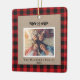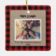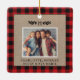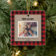 Red and Black Buffalo Plaid Burlap Monogram Photo Ceramic Ornament